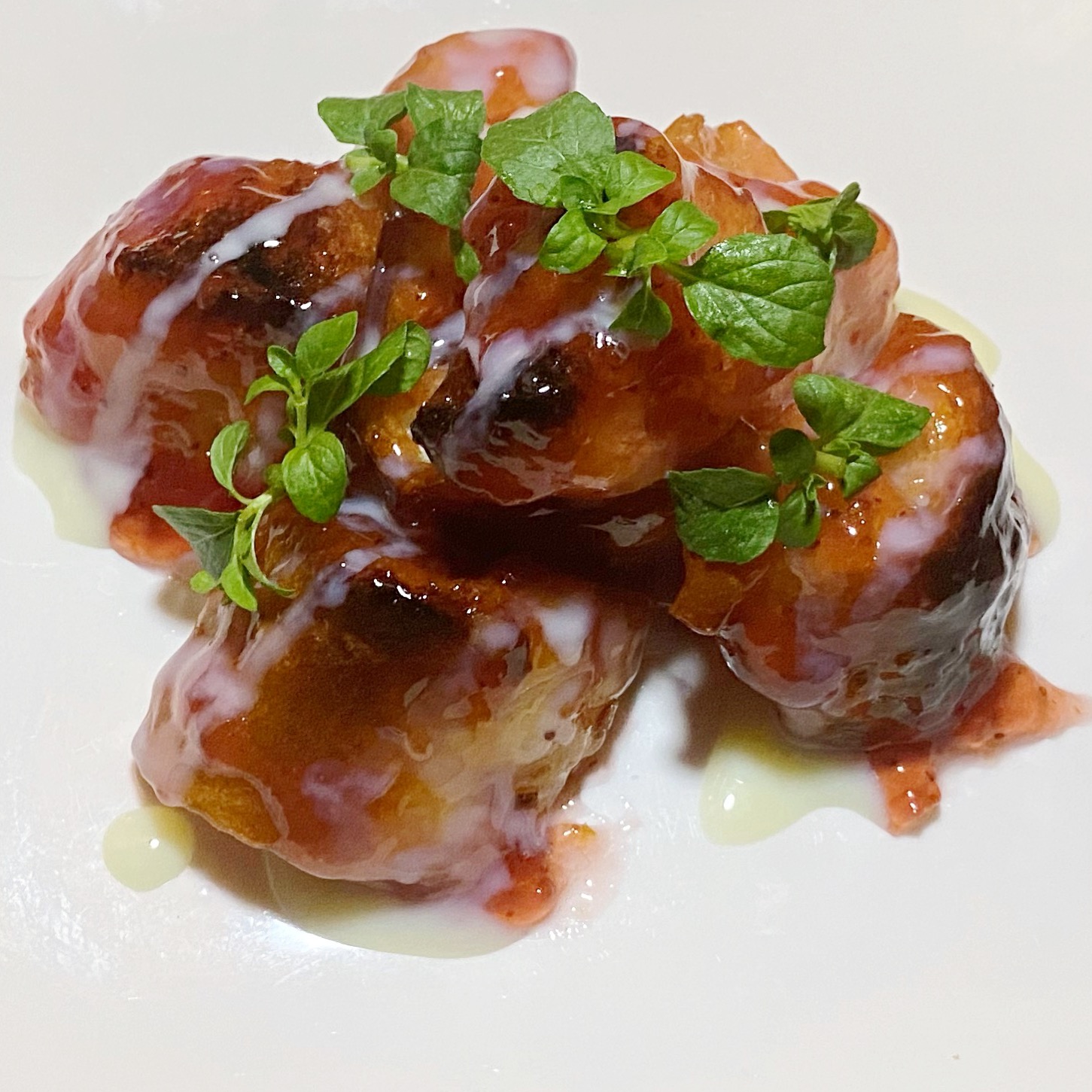 - ミントの葉を散らしてできあがりです。