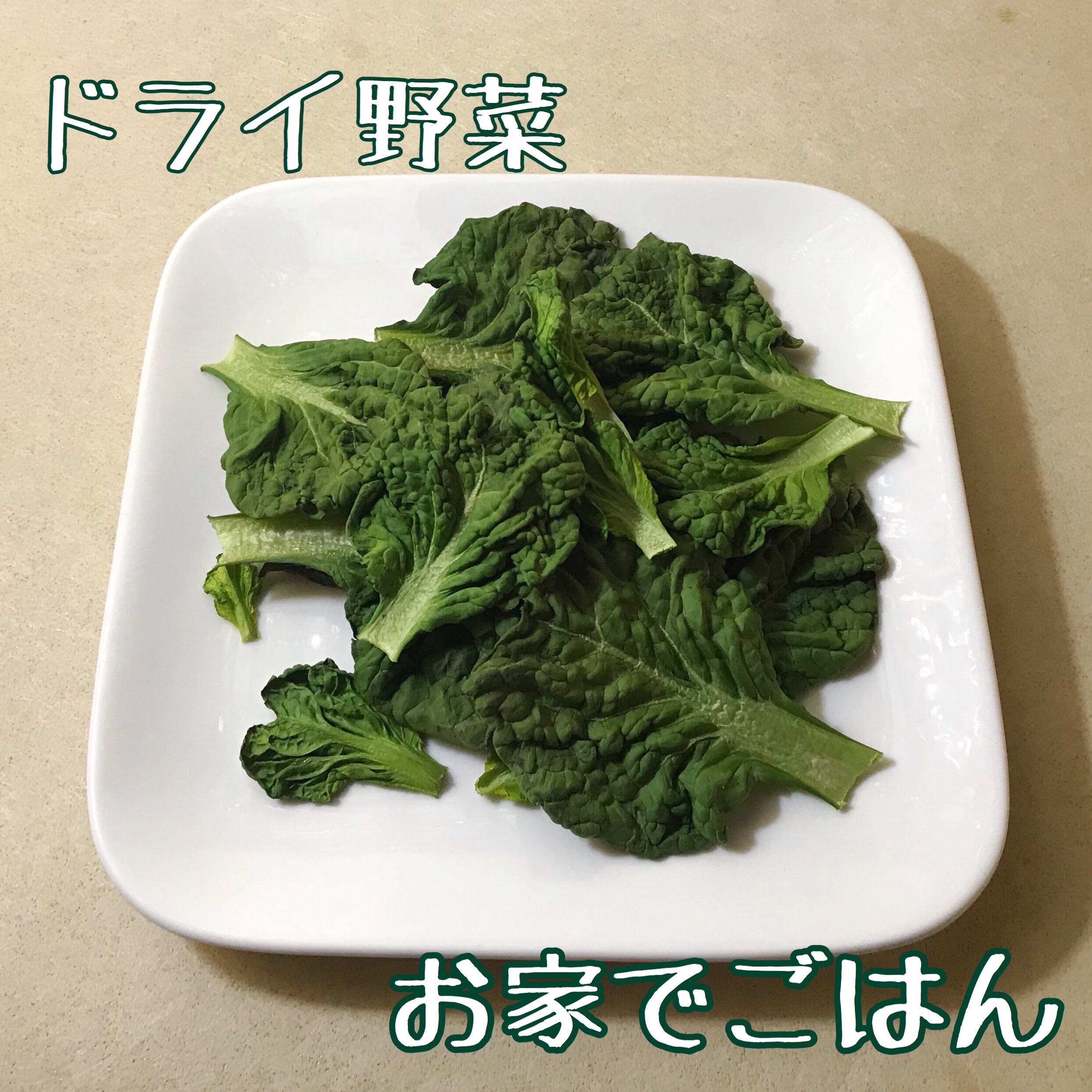 写真は小松菜の一種、ゆきなをドライ野菜にしたものです。次回のレシピで使います。